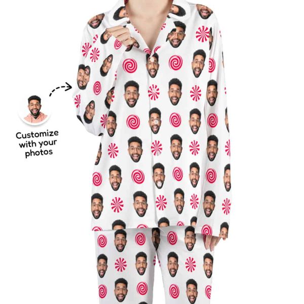 Ho ho hold up, because these absolutely hilarious funny mens christmas pajamas are about to become the star of every holiday gathering. Picture this: your grinning face perfectly positioned alongside classic red and white peppermint candies in a pattern so sweet, Santa himself might get jealous. This holiday sleepwear for men takes the traditional Christmas aesthetic and gives it that personal twist that makes everyone do a double-take, creating the kind of memorable moment that becomes family legend for years to come.